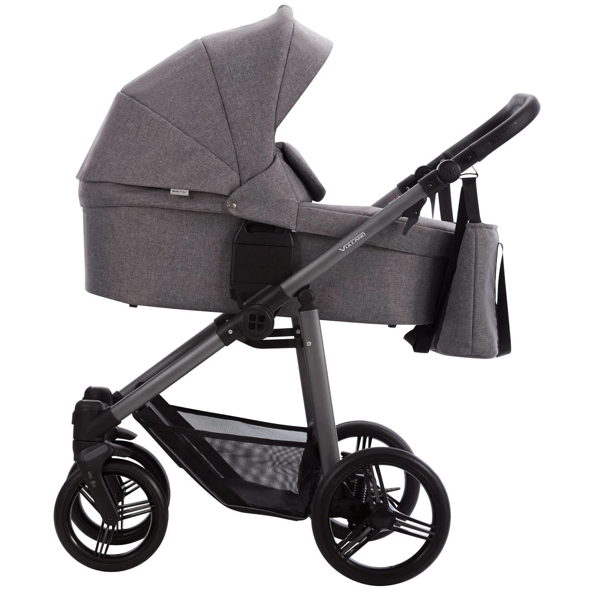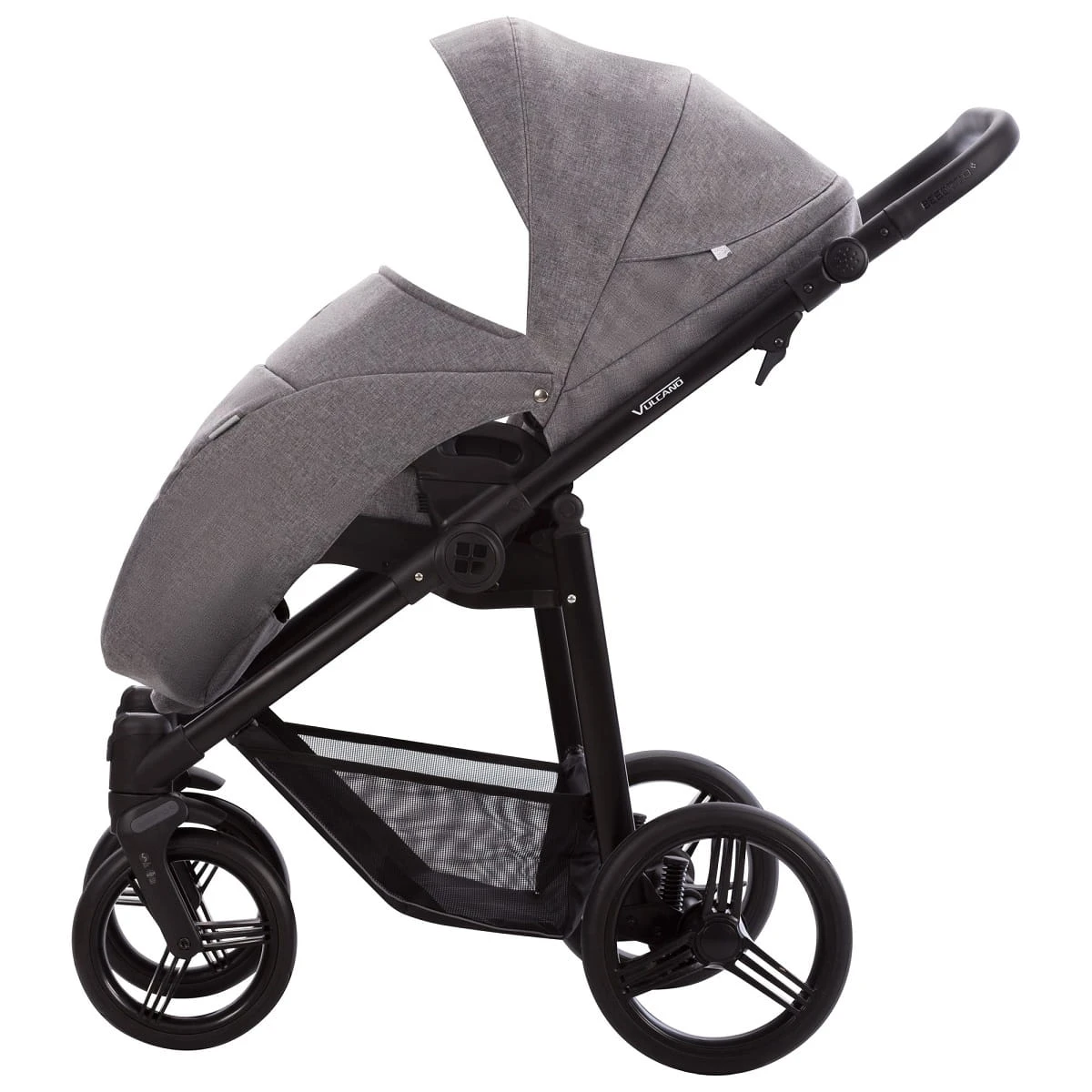 Bebetto Vulcano w nowej odsłonie charakteryzuje przede wszystkim nowymi bezobsługowymi kołami typu Flexy Whels oraz odświeżoną tapicerką. Wygodna gondola wyposażona jest w odkrywaną siatkę wentylacyjną i pokrowiec wyposażony w panel chroniący przed powiewami wiatru. Siedzisko spacerowe można montować przodem lub tyłem do kierunku jazdy a atrakcyjne logo Bebetto umieszczone na regulowanym podnóżku dodaje wózkowi uroku. Zainstalowane systemy bezpieczeństwa (Stop&Go) i poprawy komfortu jazdy (DMS i SAS) są już w standardzie i zapewniają spokojny i bezpieczny spacer.