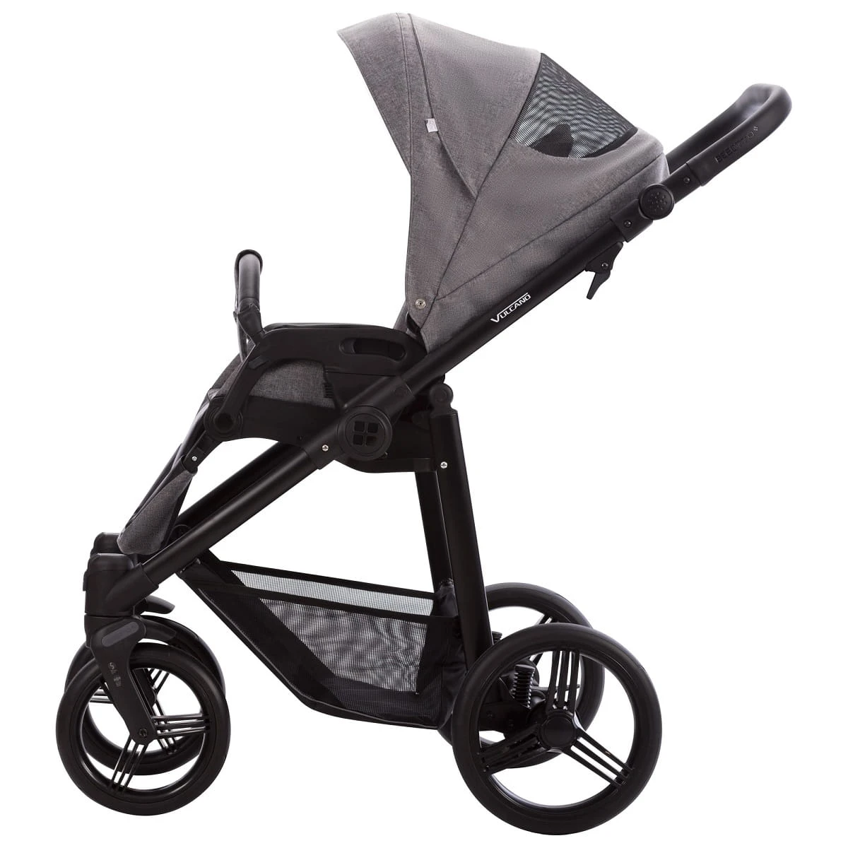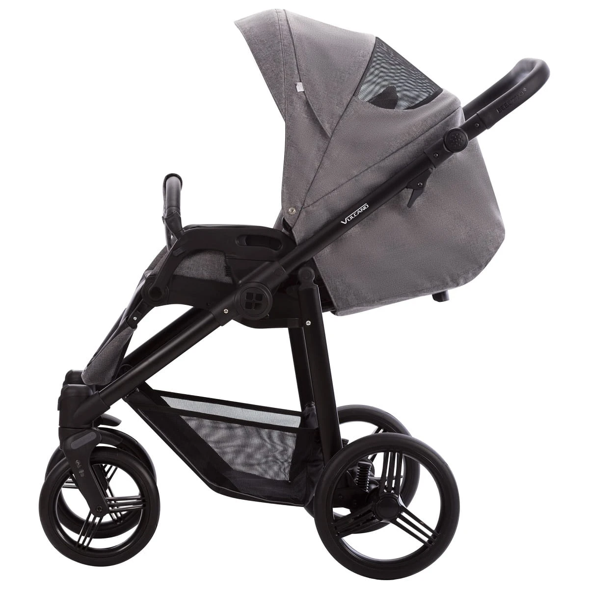 Bebetto Vulcano w nowej odsłonie charakteryzuje przede wszystkim nowymi bezobsługowymi kołami typu Flexy Whels oraz odświeżoną tapicerką. Wygodna gondola wyposażona jest w odkrywaną siatkę wentylacyjną i pokrowiec wyposażony w panel chroniący przed powiewami wiatru. Siedzisko spacerowe można montować przodem lub tyłem do kierunku jazdy a atrakcyjne logo Bebetto umieszczone na regulowanym podnóżku dodaje wózkowi uroku. Zainstalowane systemy bezpieczeństwa (Stop&Go) i poprawy komfortu jazdy (DMS i SAS) są już w standardzie i zapewniają spokojny i bezpieczny spacer.
