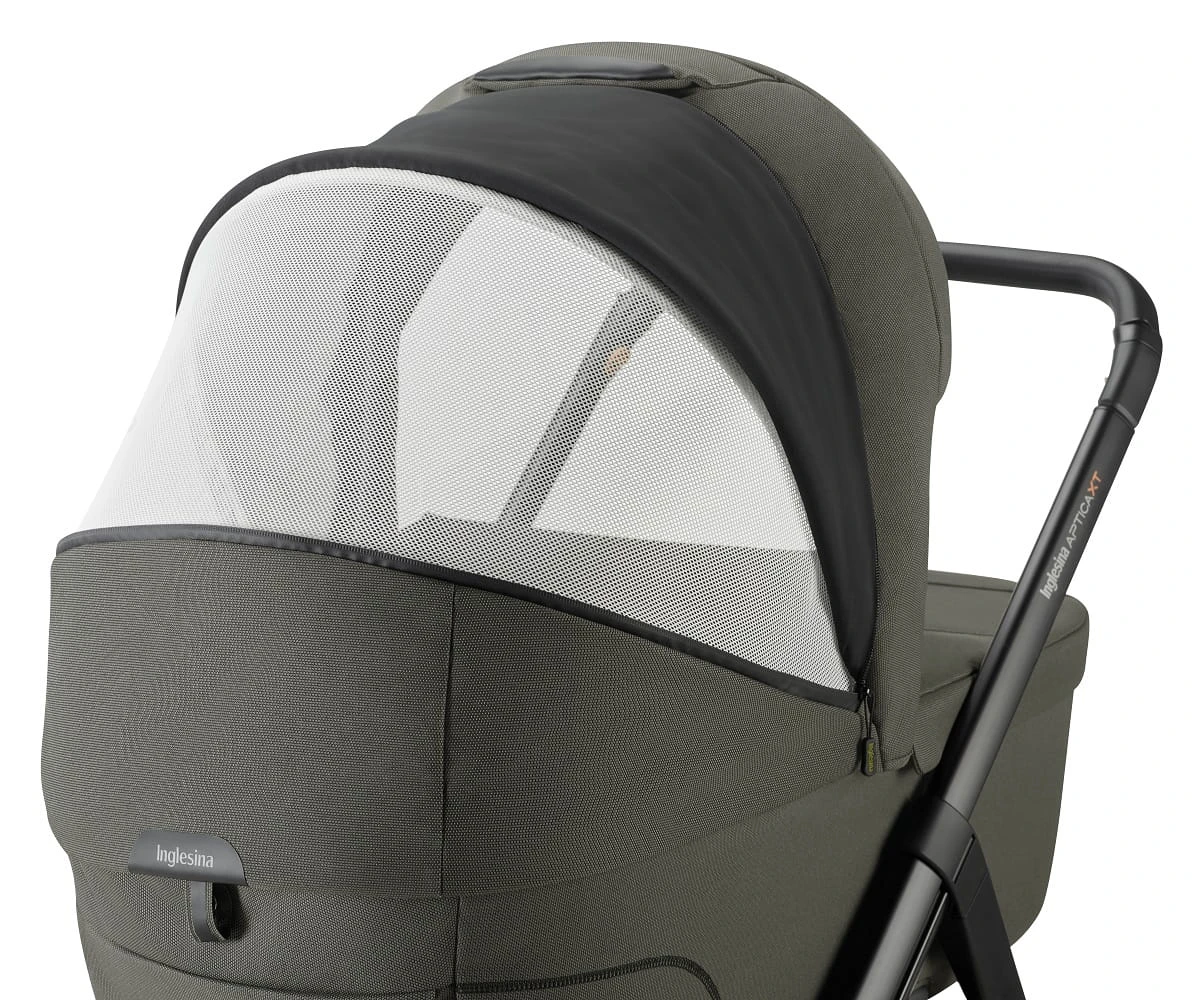 • regulowana budka z daszkiem przeciwsłonecznym, filtrem UPF 50+ i wygodnym uchwytem do przenoszenia