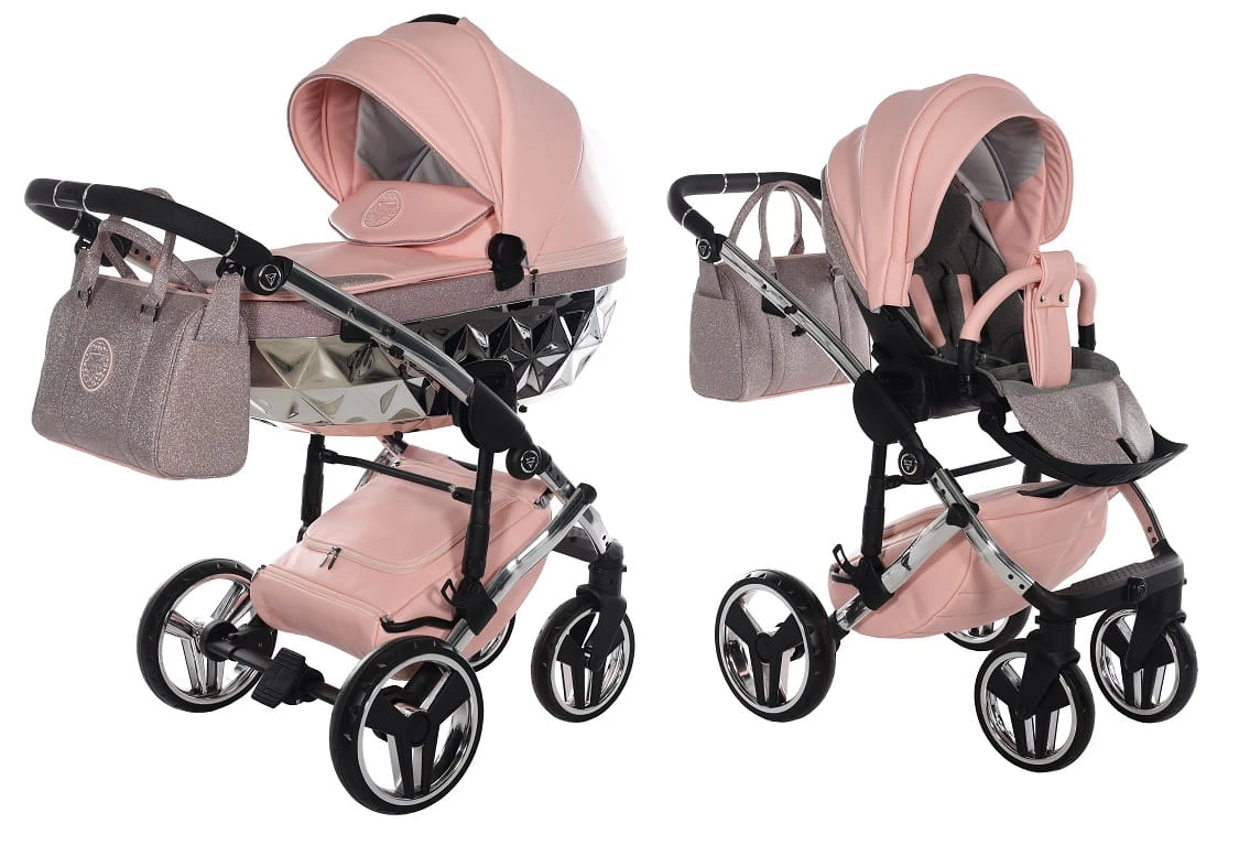 Junama Hand Craft Glitter charakteryzuje się luksusowym designem, który podkreśla wyjątkowość właściciela wózka. Haftowane detale i wstawki z tkaniny brokatowej nadają mu elegancki i niepowtarzalny wygląd. Jeśli dodamy do tego zaawansowany 6-punktowy system amortyzacji ,ergonomiczne siedzisko oraz bogate wyposażenie to otrzymamy odpowiedź na pytanie dlaczego warto mieć ten wózek. Styl, klasa, elegancja i komfort - taka jest właśnie Junama Hand Craft Glitter.